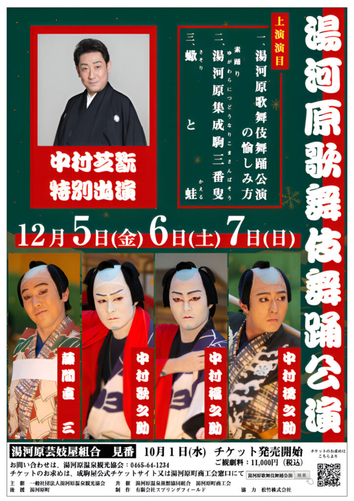 この公演には宿泊付きのプランも販売いたします。有名な歌舞伎役者を手の届く距離で観ることができる体験と、ゆったりと寛げる温泉宿の組み合わせは、ここ湯河原でしか味わえない貴重な体験です。今後、湯河原温泉での歌舞伎公演は継続し、ブランド化に向けて発信していきます。